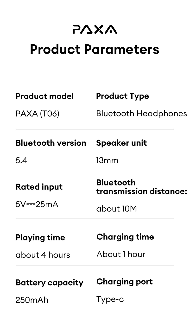 PAXA T06 AI Bluetooth 5.4 Earphones